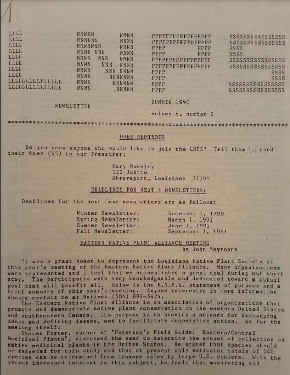 - Observations on the Wildflower Plantings along U.S. 165, North of Monroe, LA 1990