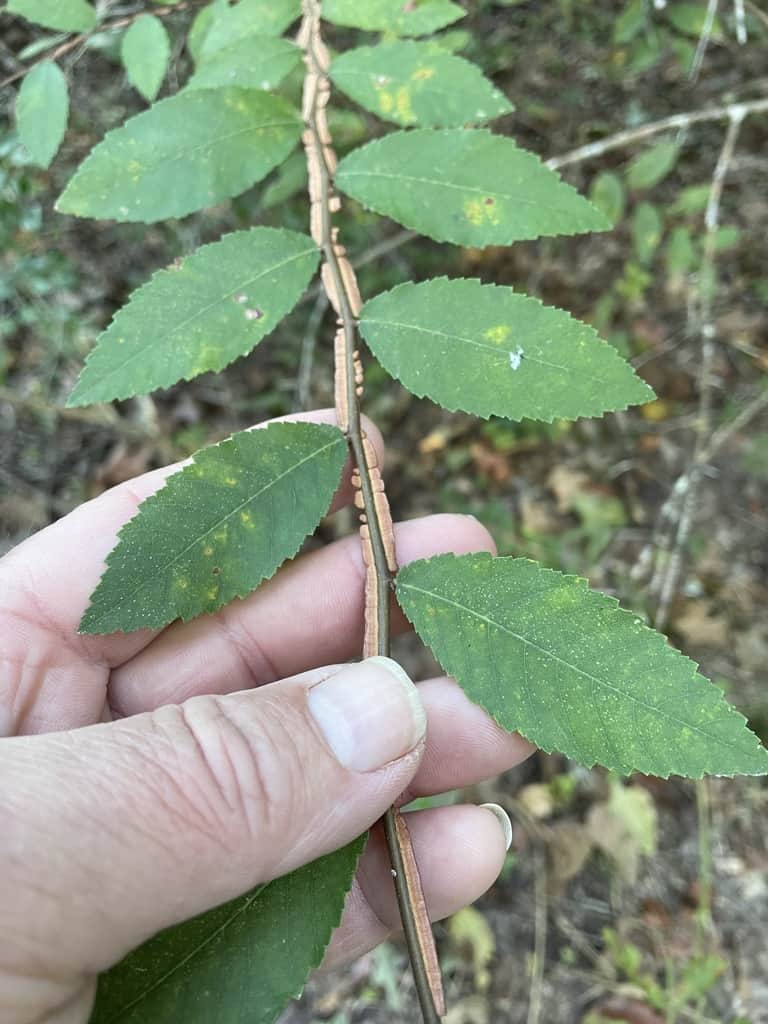 Winged Elm Ulmus alata is a fast-growing, medium size (40’ – 50’ X 30’ – 40’) deciduous tree found in most Louisiana parishes in woodlands with moist or dry upland soils, along stream banks, and occasionally, rivers. Its leaves are smaller and narrower, and leaf bases more even, than other elms. Its name refers to the corky, wing-like projections present on the opposite sides of its twigs and branches. Flowers are dull reddish in color and appear February – March.